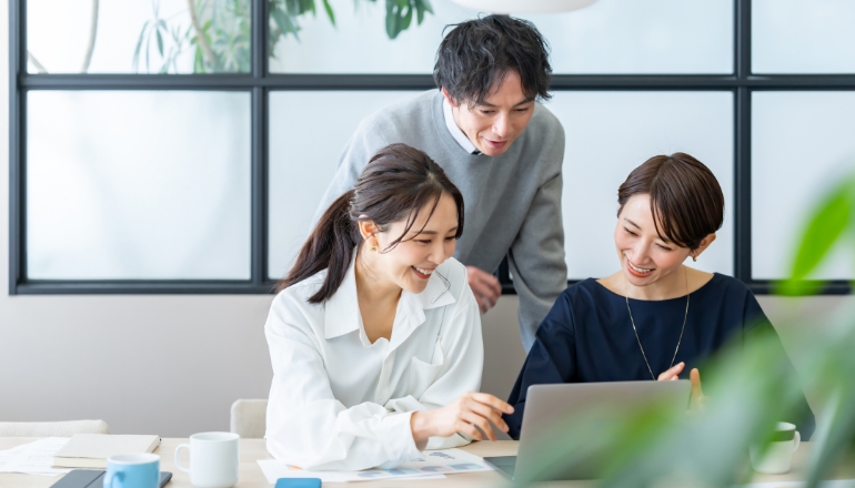 エイジィでは、上下関係の強いピラミッド型ではなく、階層を最小限に抑えた「フラット型組織」を採用しています。役職や立場にかかわらず意見を出し合える環境を整え、意思決定のスピードと柔軟性を高めています。こうした仕組みにより、一人ひとりが主体的に動ける文化を尊重しています。